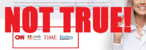 Yet another lie that we stumbled across on the website has to do with so called news mentions. Cryptorevoltapp.com features a section which says as seen on Forbes, Time, Financial Times, and CNN. Yes, it would certainly inspire confidence in this automated cryptocurrency trading app, if it was true. However, of course, this simply is not true at all.