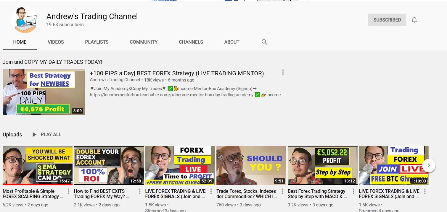 One of the resources at your disposal to copy Forex trades with ease is Andrew’s Trading Channel. Now, in case you did not know, Andrew is the mentor from Income Mentor Box, and he has his own YouTube channel.